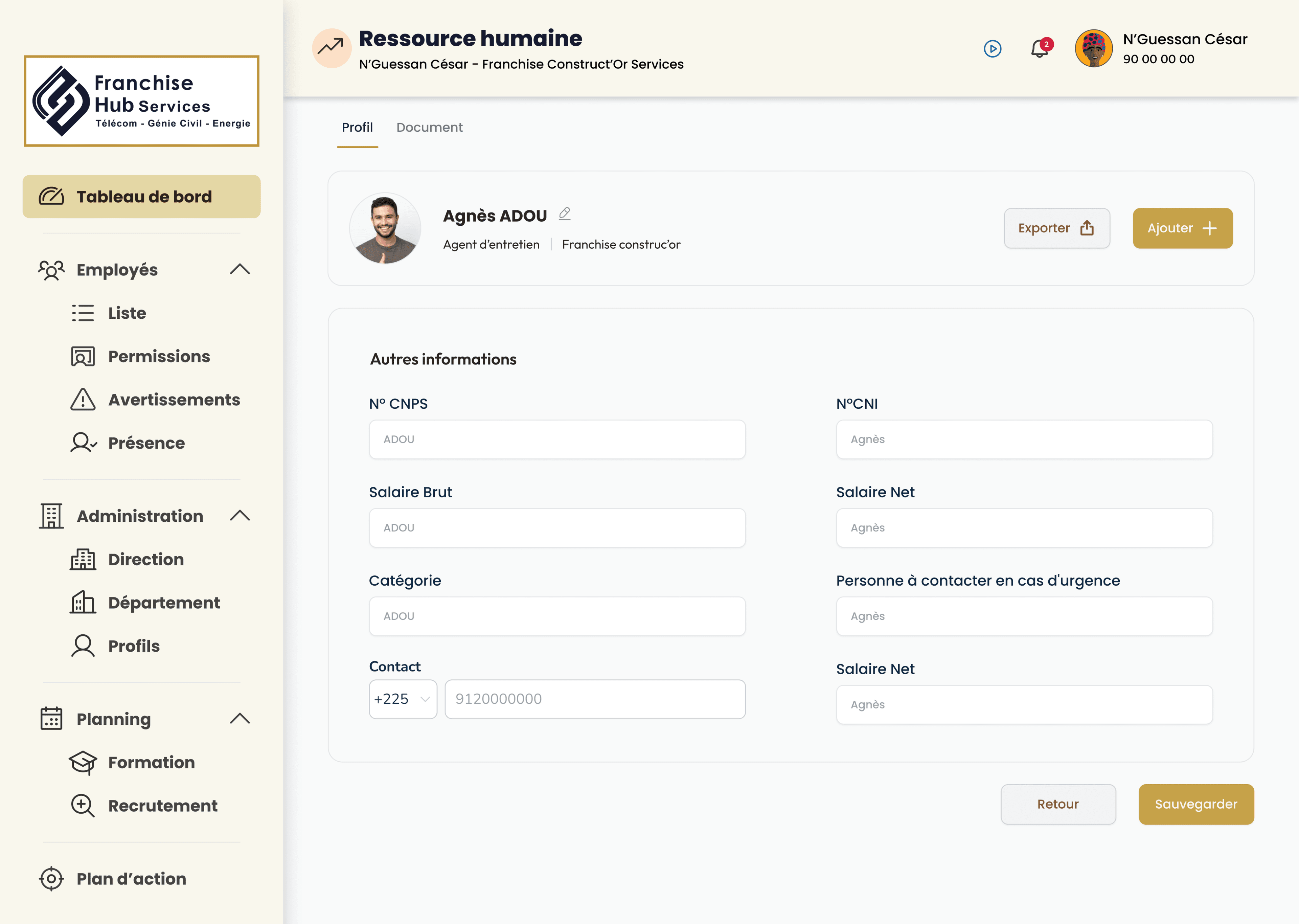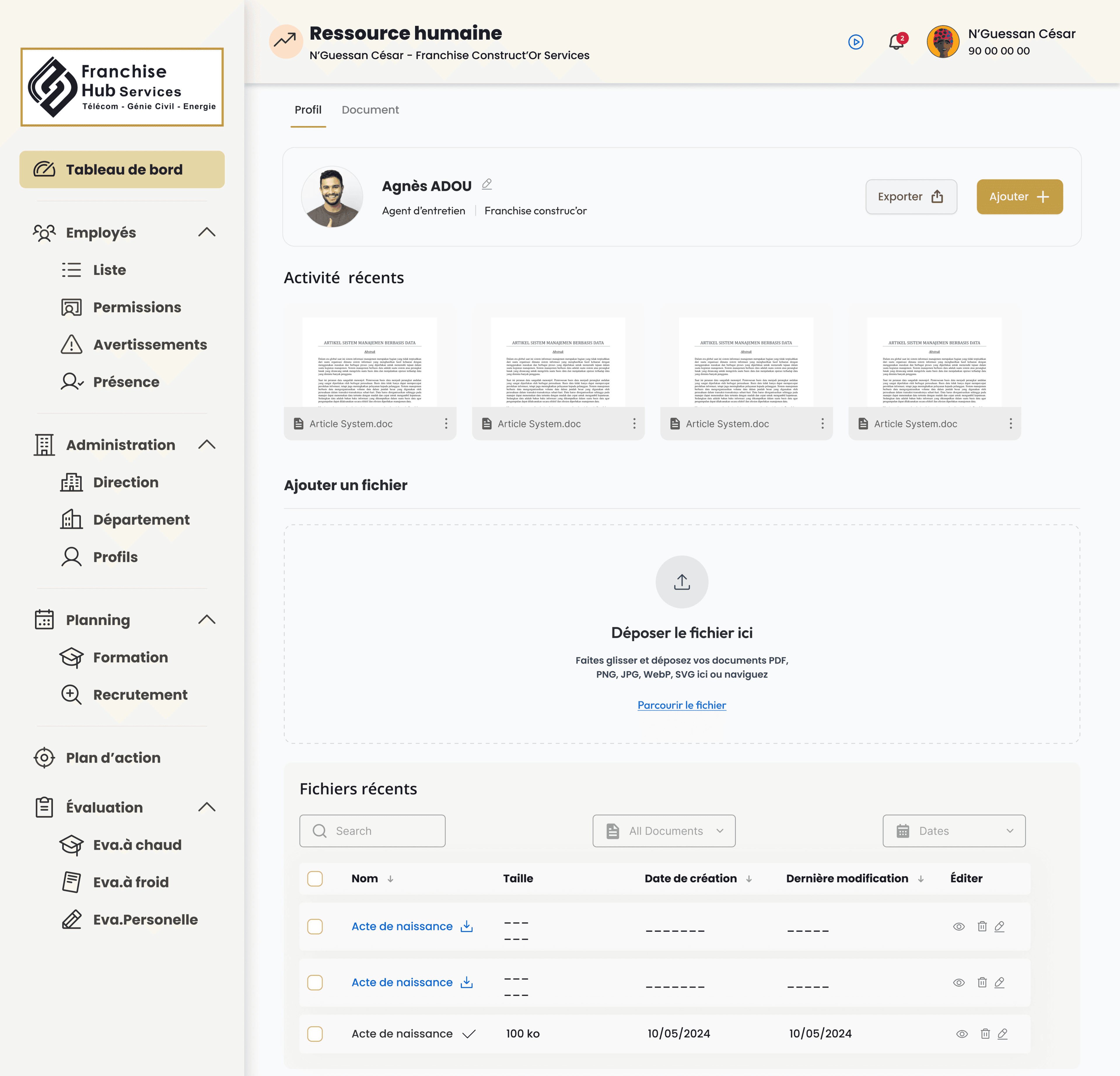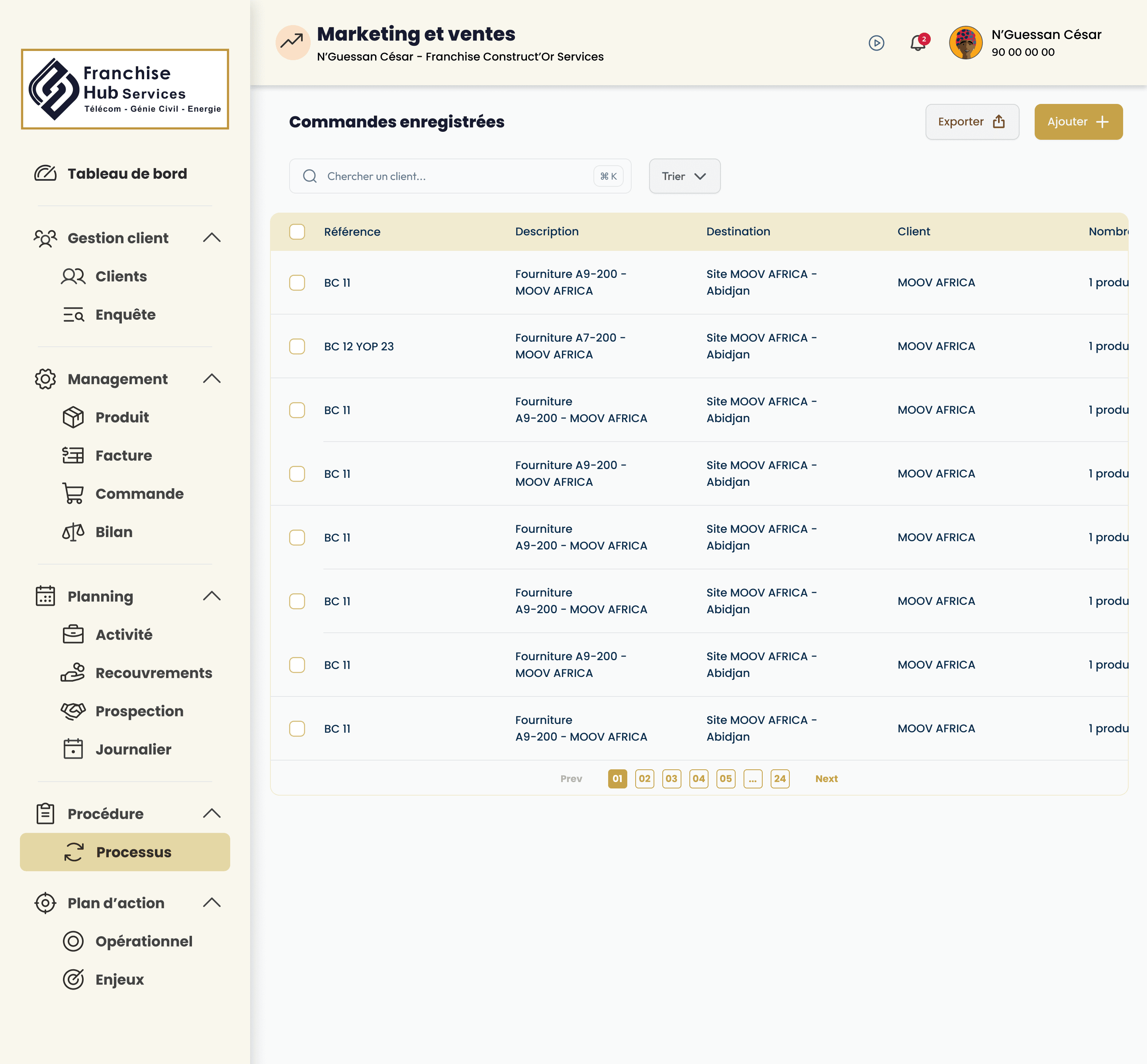 Franchise Construct'Or Services est une plateforme pensée pour accompagner le réseau franchise : centralisation des données, pilotage opérationnel et expérience cohérente sur le web comme sur mobile, au service des équipes terrain et du siège.